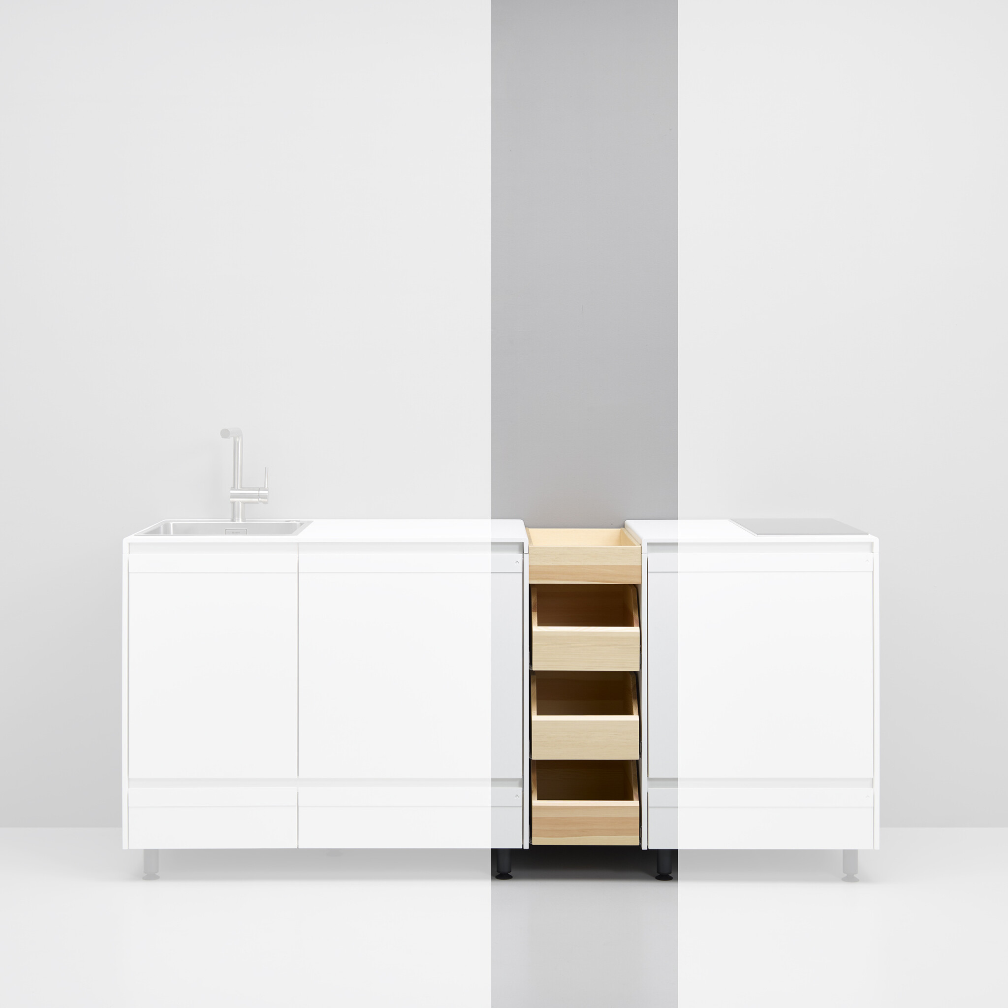 Basismodul 108 Spüle+ StandardGerät: 2 x Auszug (Basis T 40 cm) | 1 x Drehtür | Nische für Gerät