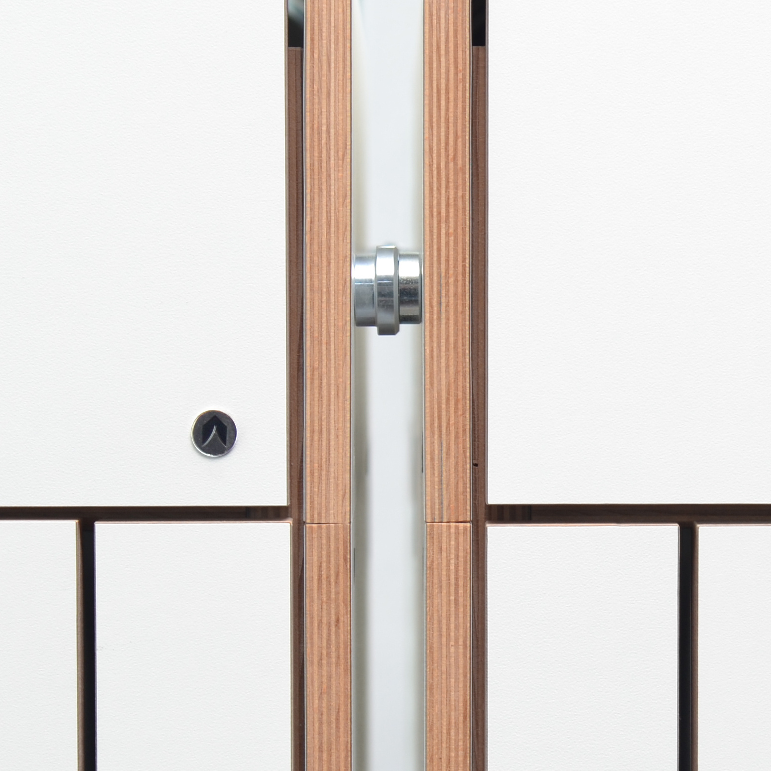 Beech shaped plywood, Surface: high pressure laminate, white ~ RAL 9010(shock strength, scratch an abrasion resistant)