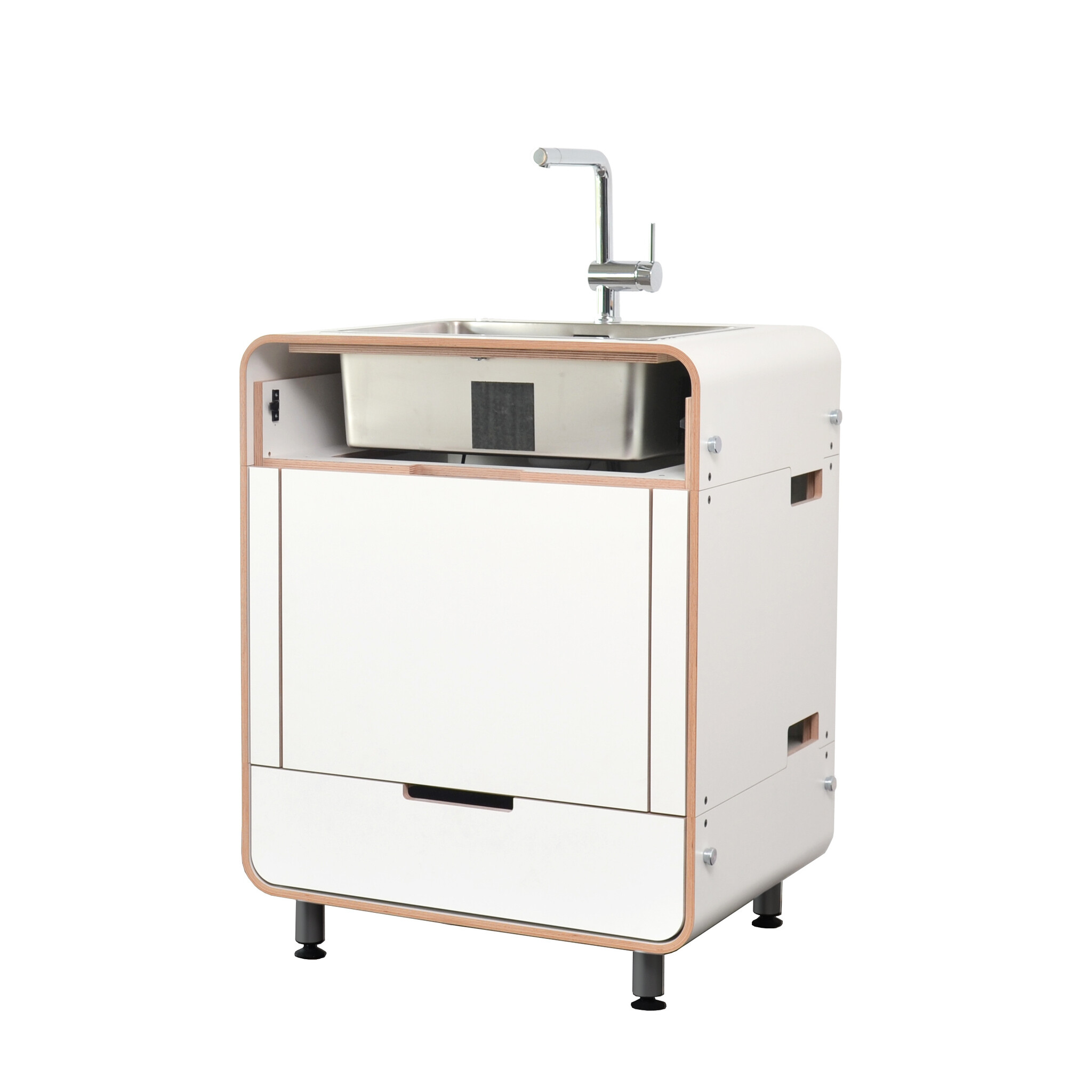 The basic price is without electrical devices, sink and supplementary equipment. These can be selected additionally (devices as shown). For more individual options please benefit from the possibilities of an individual configuration of the basic modules or take advantage of our free planning service