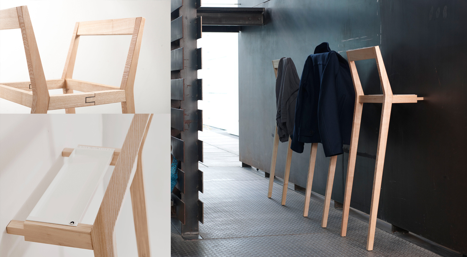 Whether in the hallway, bedroom, or bathroom: Kammerdiener is a flexible storage solution for any room. It holds jackets and coats, keeps towels handy, or disappears discreetly under discarded clothing. The lightweight but sturdy frame made of solid ash wood does not require any fastenings. Thanks to its flared legs and non-slip rubber feet, Kammerdiener stands securely against the wall. The arms are available in two versions and can be easily assembled into a free-standing coat rack thanks to classic wooden joints. A practical extra is the tray insert. It provides storage for jewelry, keys, smartphones, or other everyday items—ideal for keeping things tidy and having everything you need close at hand.